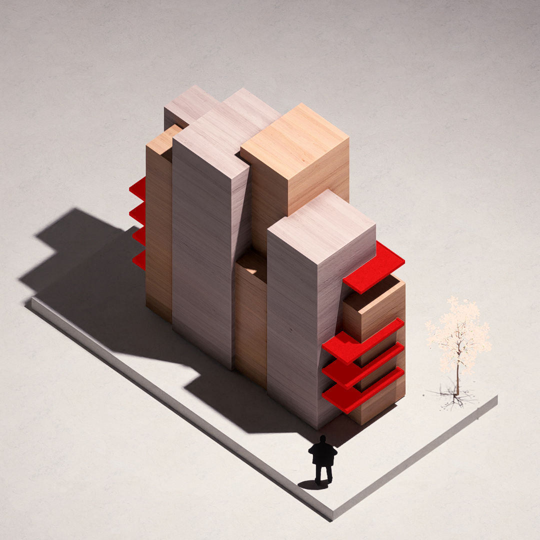 בפרויקט זה, השוכן בתוך מרקם אורבני בחיפה, נשמרים ומודגשים ערכי הטבע והנוף הייחודיים למגרש. החורש הטבעי של עצי האורן, יחד עם הנוכחות הדרמטית של ההר והים, הופכים למרכיבים מרכזיים בתכנון. בשונה מפרויקטים אחרים, נעשה מאמץ לשמר את העצים הקיימים תוך תכנון חניון תת-קרקעי, המאפשר שחרור הקרקע לטובת שטחים פתוחים והרמוניה עם הסביבה. הבניין מתוכנן כך שימקסם את החיבור לנוף עוצר הנשימה, תוך שמירה על איזון בין חדשנות אדריכלית לסביבה טבעית . הפרויקט נעשה בשיתוף עם פרופ' אדר' ברוך ברוך ז"ל ואדר' גליה ויזר