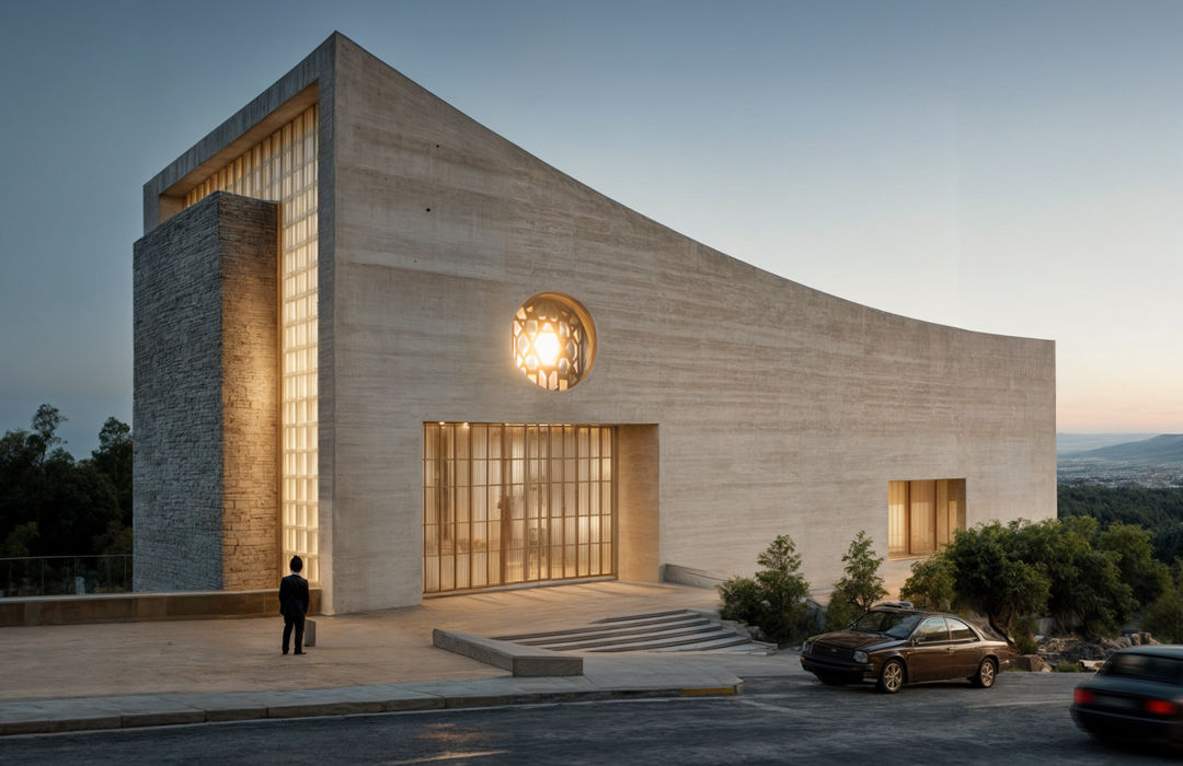 בית הכנסת "חיי שרה" בחיפה תוכנן מתוך רצון לשלב בין אילוצי השטח הקשים לערכים רוחניים. המגרש המשולש עם קצהו הצר הפונה מזרחה והטופוגרפיה התלולה הפכו לאבן דרך בתכנון. צורת המבנה הייחודית, המזכירה משפך אור, משמשת כמרכיב סימבולי רב עוצמה: היא ממחישה את האופן שבו עולם הרוח הנמצא בבית הכנסת מתרחב וקורן אל הסביבה. הפנייה מזרחה מחזקת את הארגון הרוחני והפונקציונלי, תוך יצירת ציר משמעותי לכיוון התפילה. קיר לבני הזכוכית הגדולים וקירות הבטון החשוף יוצרים שילוב של מסה וכוח לצד פתיחות והכנסת אור, הממחישים את המפגש בין ארציות לרוחניות. התכנון נעשה בשיתוף עם פרופ' אדר' ברוך ברוך ז"ל, והמבנה הפך לסמל של חיבור בין אדריכלות לבין חוויה רוחנית עמוקה